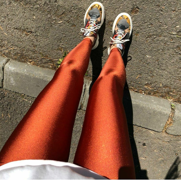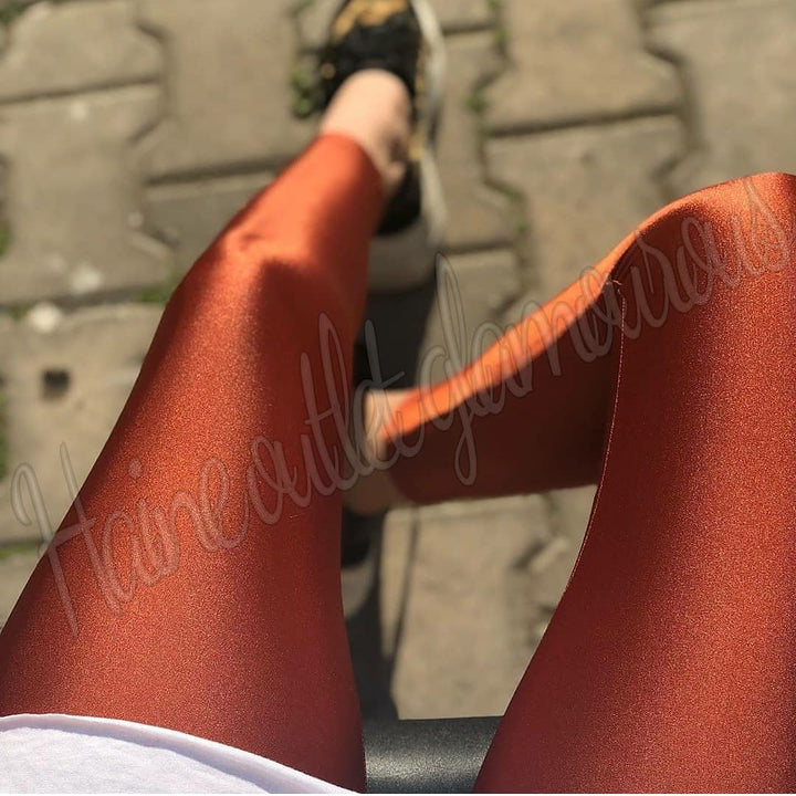 Ca punct de reper ei sunt ca si dresul. Se muleaza pe corp. Masura care o purtati in mod normal, va este ok. Lycra lucios.