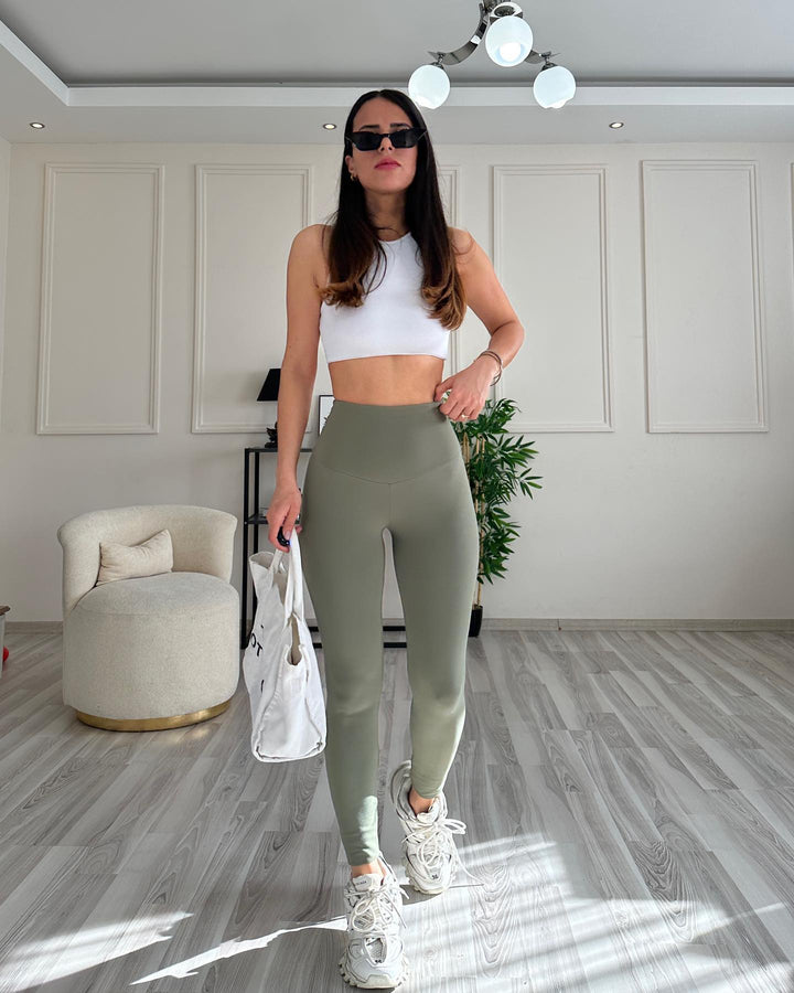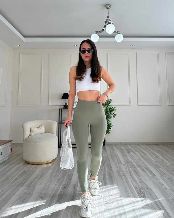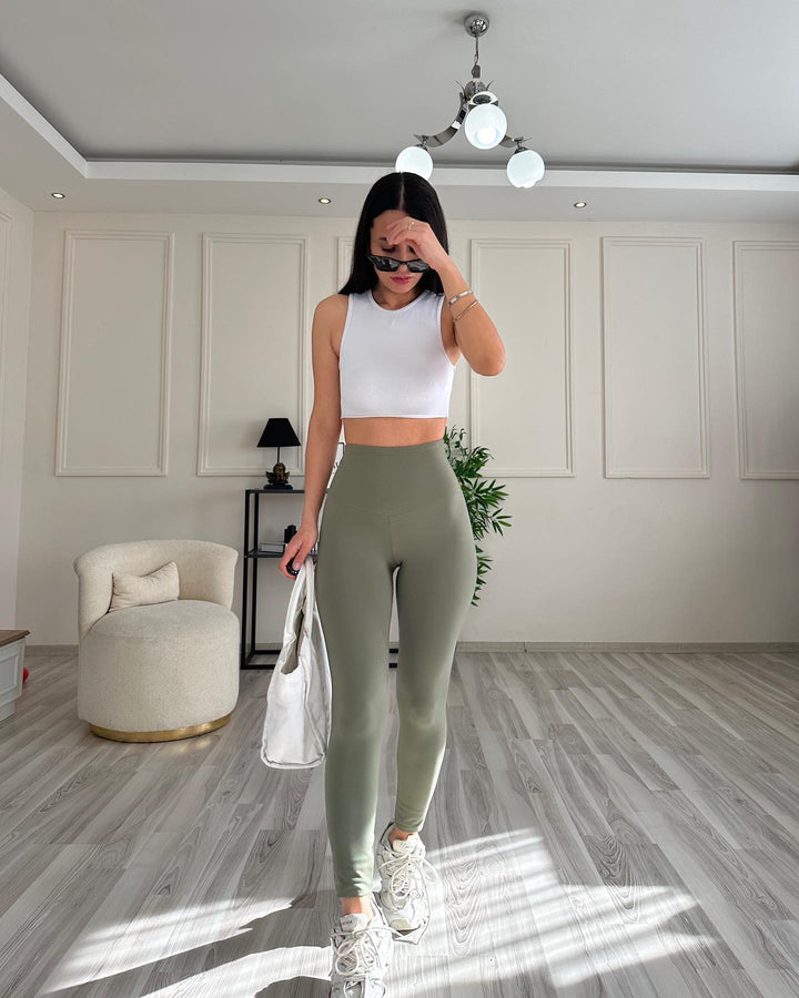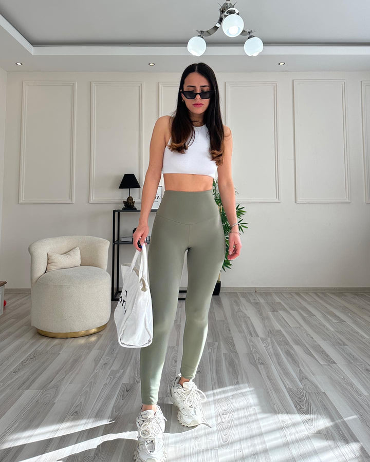 Lungime pana la gleznă cu talie înaltă. Țesătură de înaltă rezistență .
